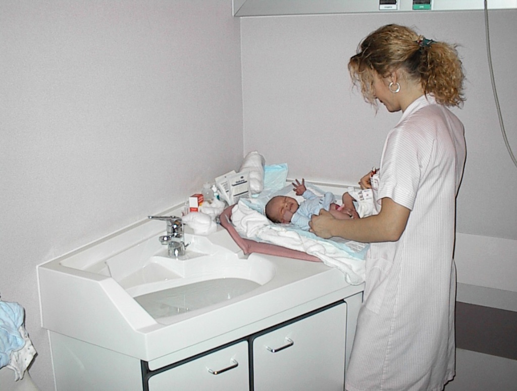 Check this out – same Sage-Femme (‘mid-wife’—- literally “wise woman”) Why is it in French they are called a ‘wise woman’ and in English they are a mid-wife? What is that anyway: ‘mid-way-to-being-a-wife’? Anyway – this woman who gave Jonah his first bath in the hospital is the same one who gave Alma her bath. I asked her – and she kind of blushed and said that yes it was possible, she’s worked there for 20 years.