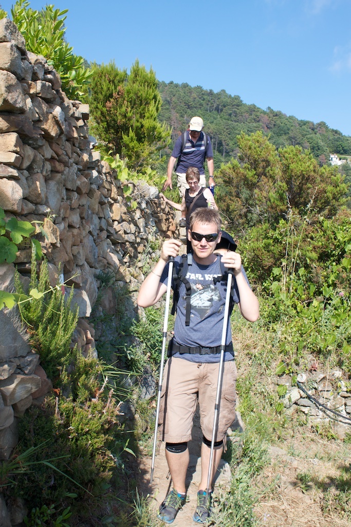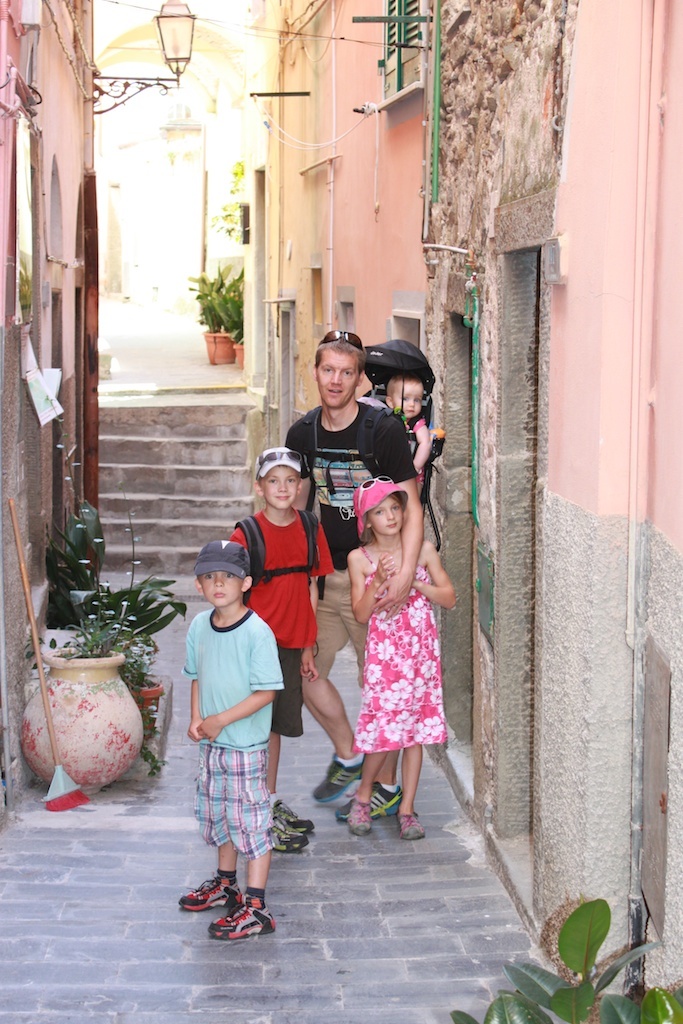 Since the idea of the Cinque Terre holiday is fundamentally about hiking between the villages, that is exactly what we spent a fair amount of our time doing. So there were 7 of us walking along the trails from age 5 to {redacted} plus Alma on my back.